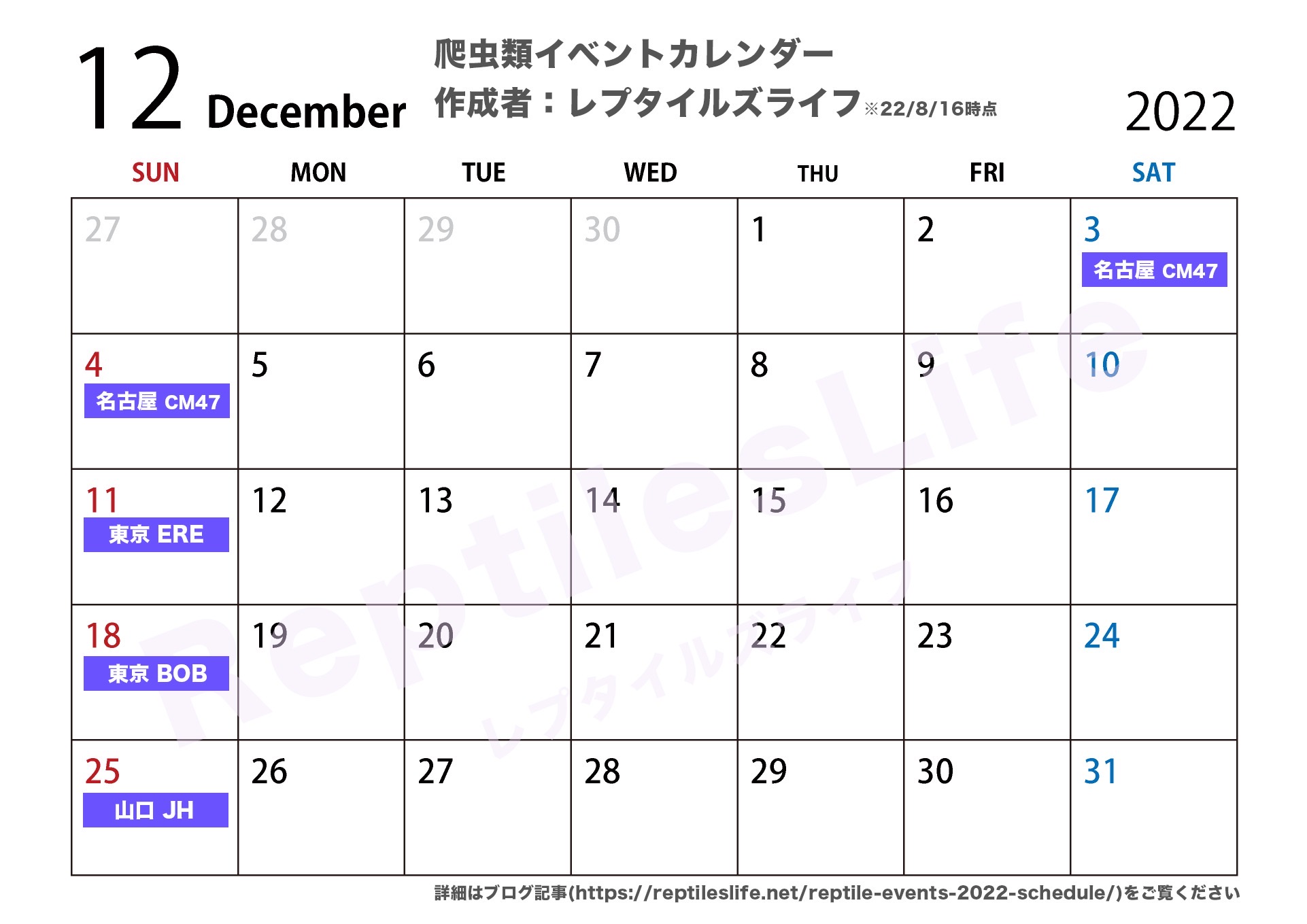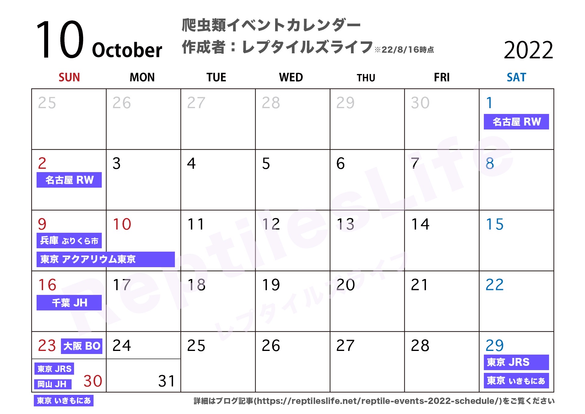 2022年に開催される爬虫類即売会イベントの日程と場所をまとめました。手入力につき間違いもあると思いますので、記載した公式サイトのリンクから詳細をご確認ください。ぜひブックマークに追加して、何度もご利用くださいませ!