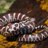 サンルイスポトシキングヘビは、メキシコに分布する小型のナミヘビです。体色は、青灰色の地色に濃い朱色の斑紋が並びます。空気の通りが良い、涼しめな環境を好む性質です。国内では、主に欧米のCB個体が流通します。さまざまな改良品種が作出されており、美しい深い色合いが人気を集めています。